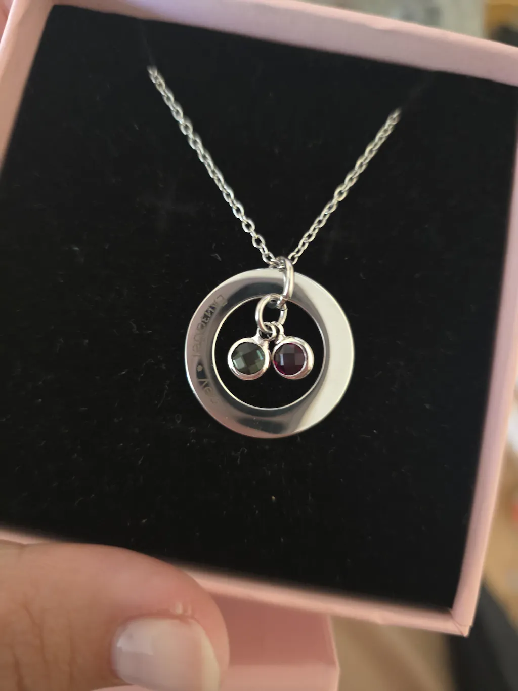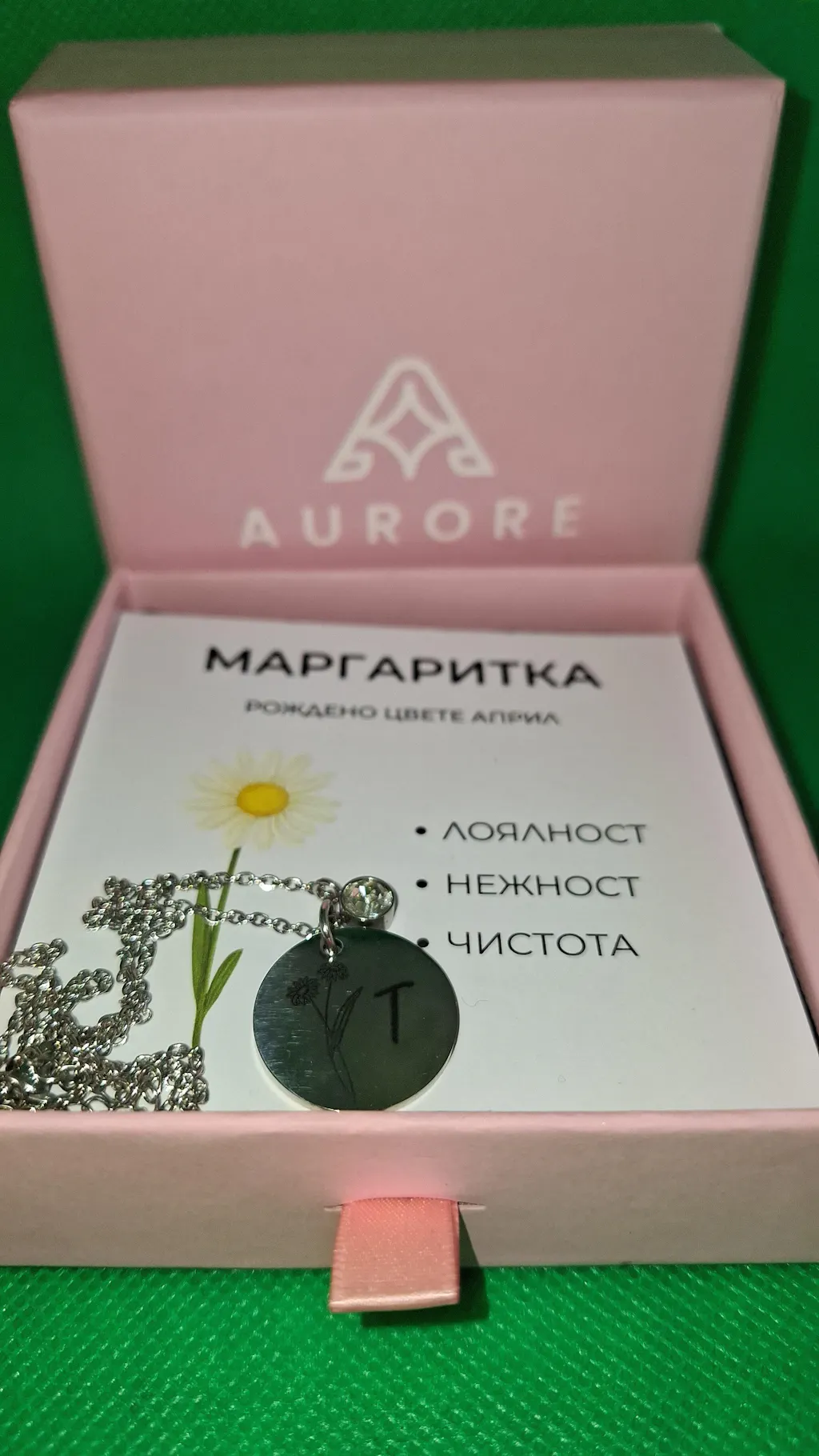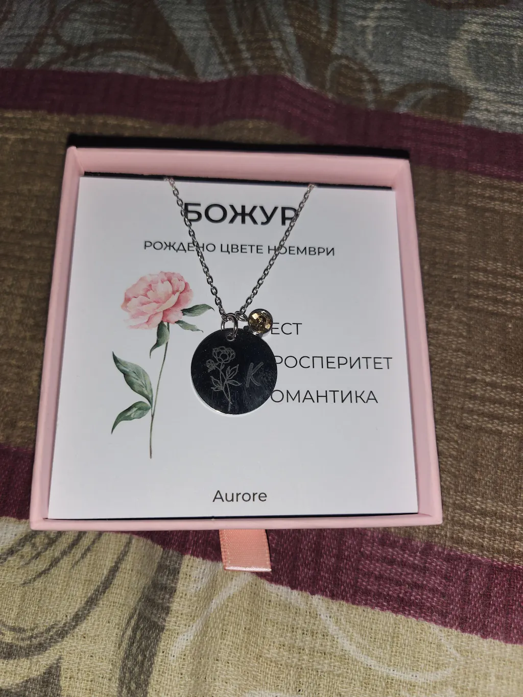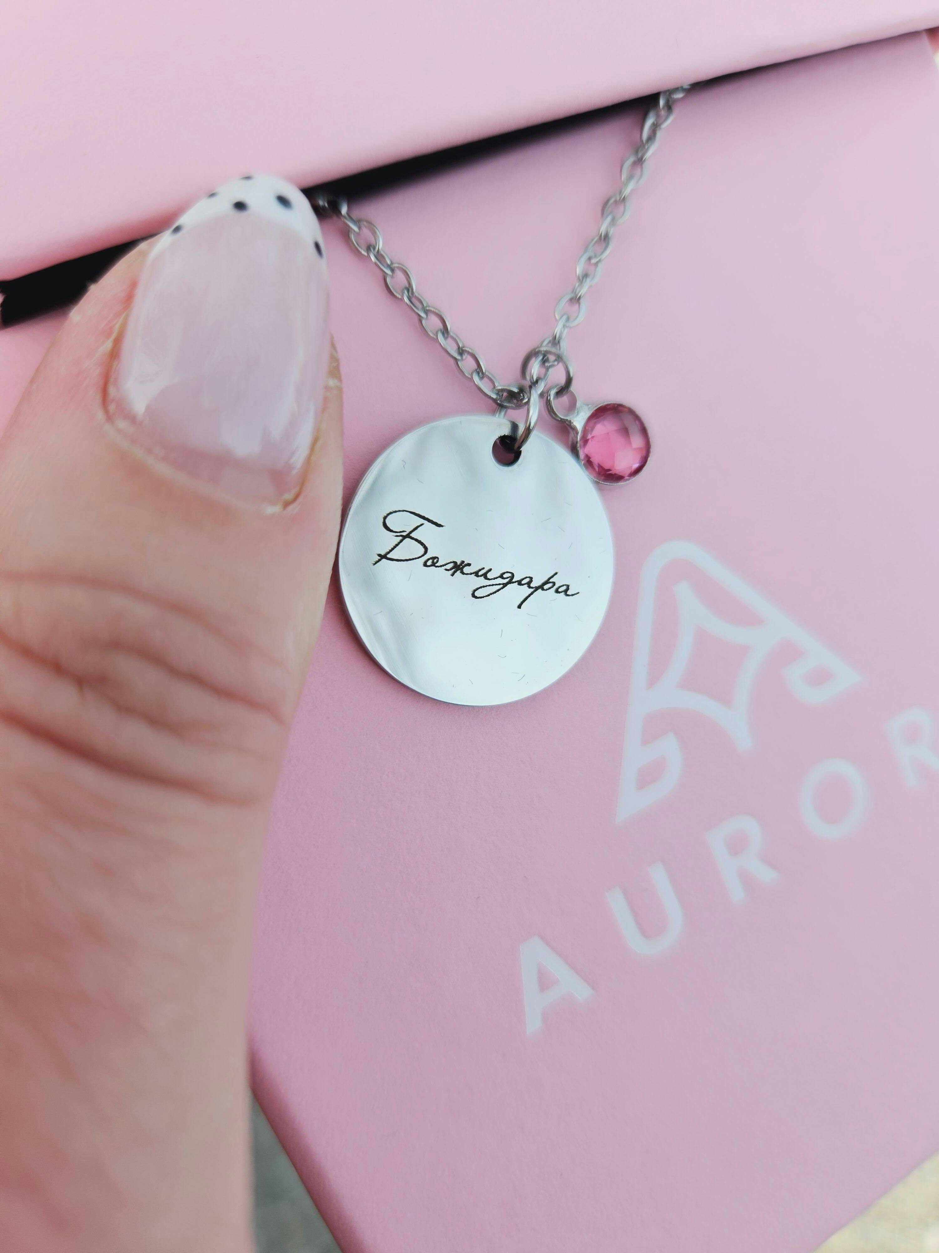 Много красиво и нежно колие. Гравираните цвете и буква са чудесно изработени. Камъкът завършва цялостно бижуто. Много съм доволна!