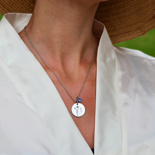 Много красиво и нежно колие. Гравираните цвете и буква са чудесно изработени. Камъкът завършва цялостно бижуто. Много съм доволна!